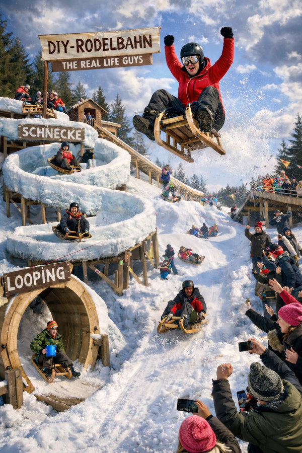 Die bekannten YouTuber The Real Life Guys kommen am Donnerstag, 12. Februar, mit einem kreativen DIY-Projekt auf die Hochwurzen und bauen eine eigene Rodelbahn.