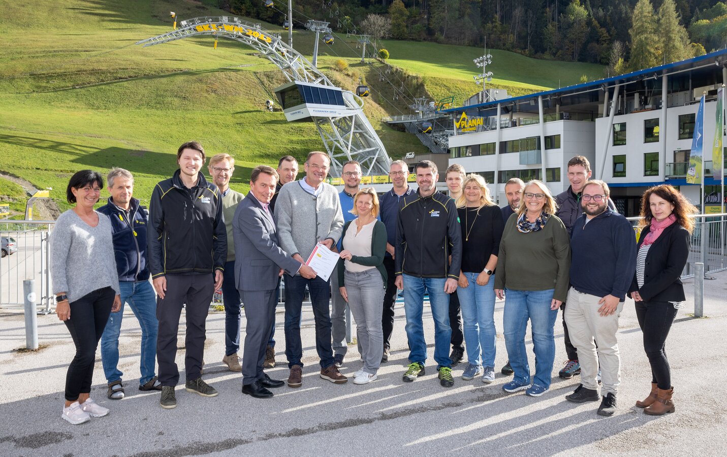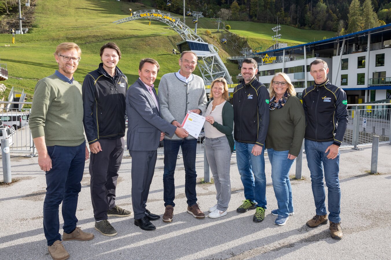Nach umfangreichen internen Audits, durchgeführt vom engagierten Qualitäts- und Umweltmanagement-Team der Planai-Hochwurzen-Bahnen, erfolgte vom 23. bis 25. Oktober das externe Audit durch den TÜV Austria. Die Erfüllung der hohen Standards in diesen Bereichen wurde erfolgreich nachgewiesen und so erfolgte die Übergabe des Zertifikates am 25. Oktober 2023 durch Ingold Wilhelmer und Carmen Weinold vom TÜV Austria im Beisein einer großen Abordnung der Planai-Hochwurzen-Bahnen.