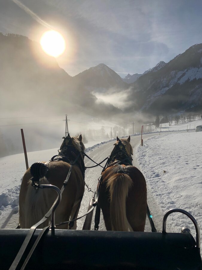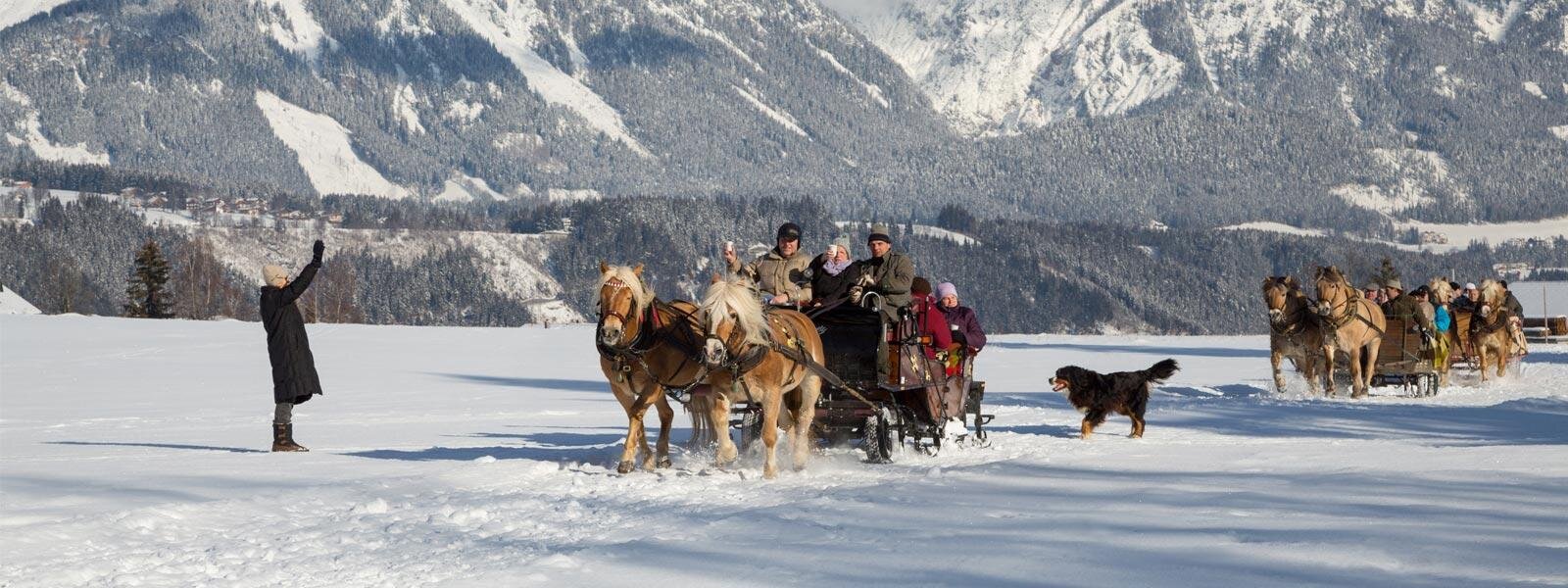 Eingehüllt in warme Decken wirst Du sicher von unseren Haflinger Pferden durch die Schladminger Winterwelt befördert. Die bezaubernde Berglandschaft durch eines der Täler ist einfach beeindruckend.