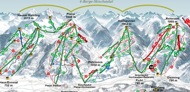 Von Westen:Tauernautobahn A 10 bis zum Knoten Ennstal - Abfahrt Richtung Graz/Schladming - rund 20 km auf der Ennstal-Bundesstraße bis nach Schladming - Abzweigung Ramsau