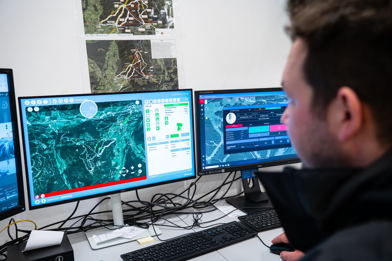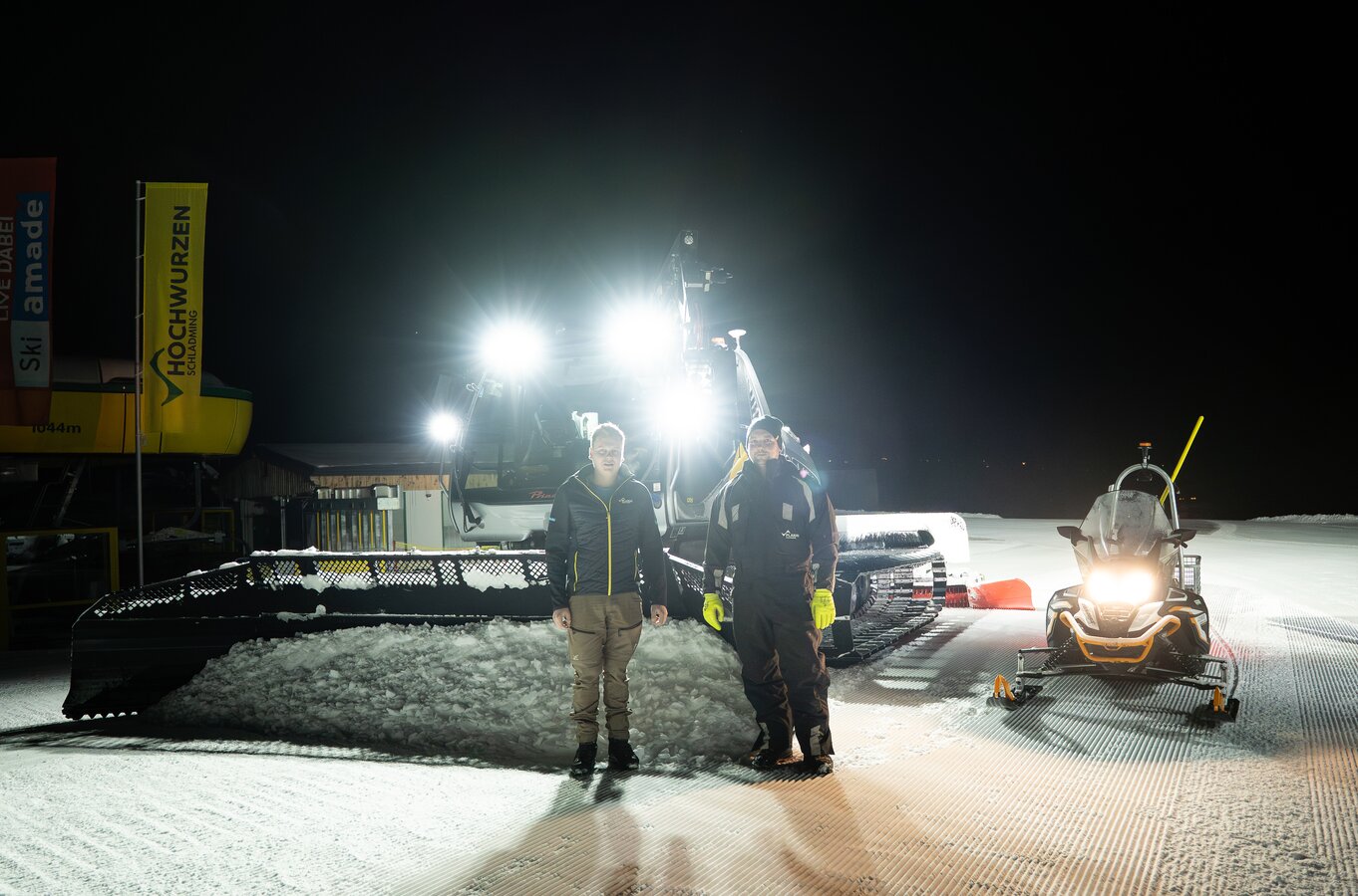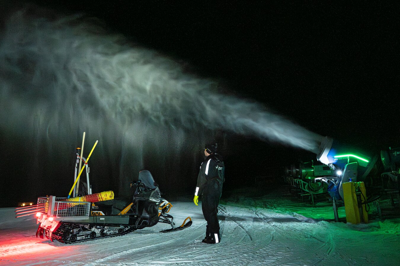 Im Zwei-Schicht-Betrieb sorgt das Team rund um die Uhr dafür, dass alles funktioniert: Eine Schicht beginnt um 14:00 Uhr, die andere um 2:00 Uhr. Schneigeräte werden gestartet und überwacht, Anlagen kontrolliert und die Schneehöhe genau auf die Pisten abgestimmt – damit die Pistengerätefahrer den Schnee verteilen und die Pisten vorbereiten können.