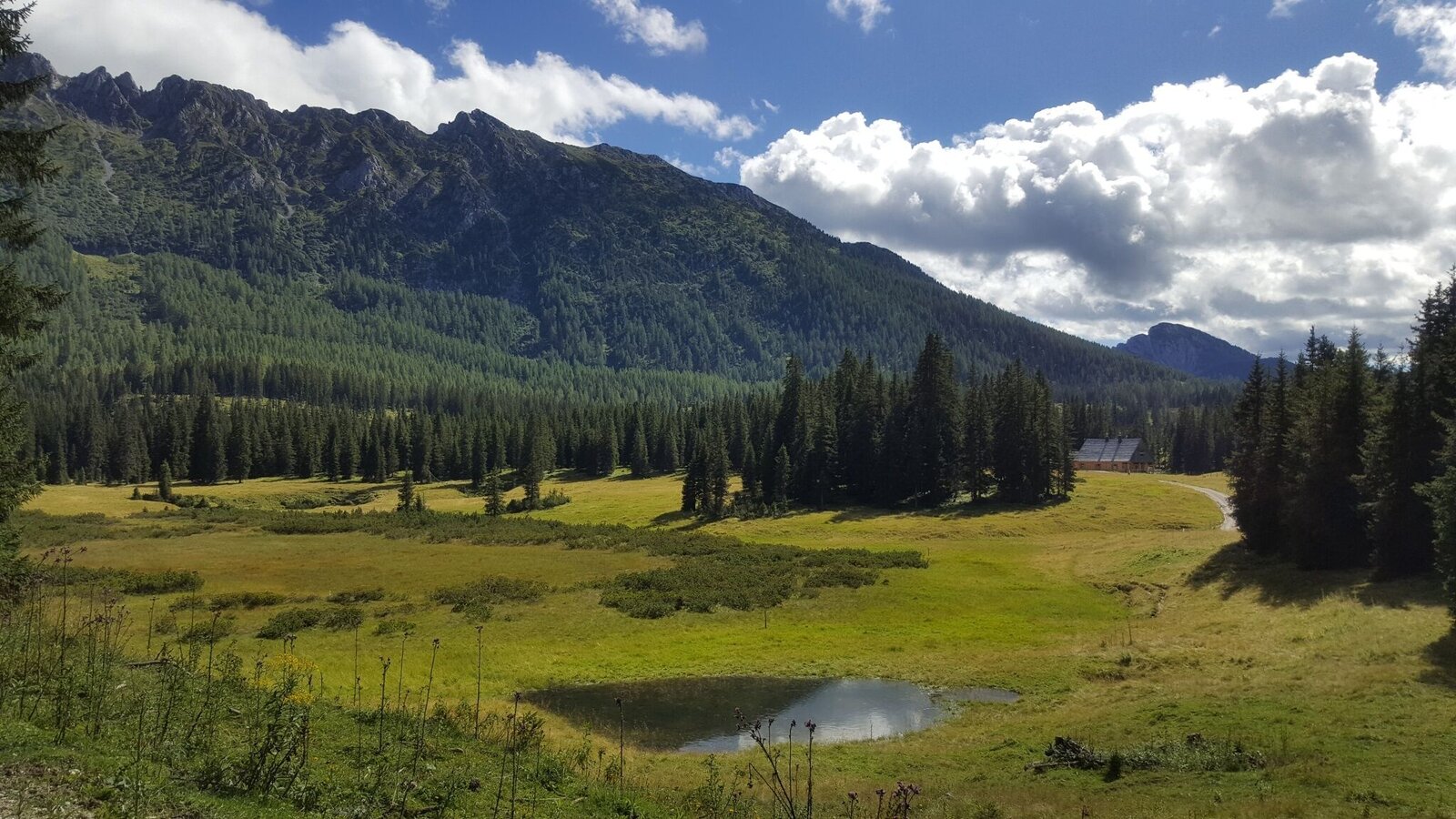On the main road we go down after the boundary stone for about 1 km, turn left into the forest road to Iglmoosalm and come via the village of Ramsau back onto the main road, cross it and immediately turn right again, first on dirt roads then again on the main road along the Gosaubach. After the first bridge over the Gosaubach we turn right into the Gosau Leitenstraße, out to the Hallstätter See. From the Gosauzwang junction, turn left towards Bad Goisern along the lakeshore to the village of Steeg and turn right towards St. Agatha near Bad Goisern. At the foot of the Pötschen pass we drive a short distance along the main road at the St. Agatha petrol station and after the bridge left up the old, initially steep Pötschen road, past the Sarstein, until we reach the pass summit. After the pass, we take a forest road to the right, up RI Höheralm and down to Sommersbergsee.